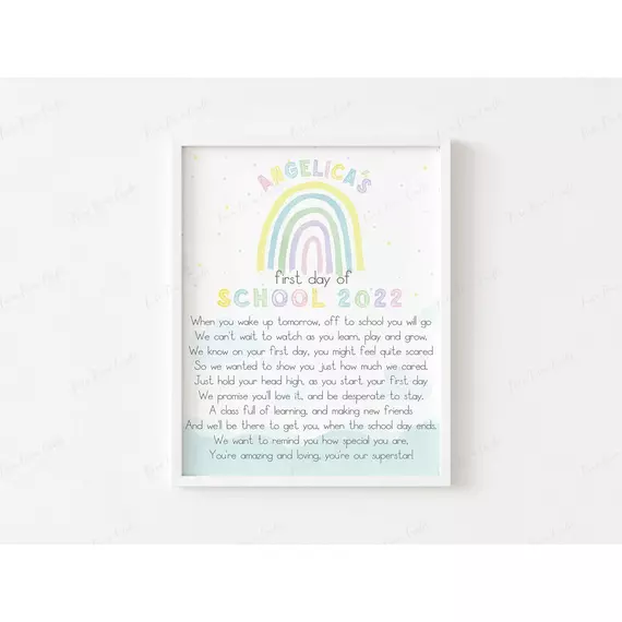 The first day of school is a momentous occasion, and our Personalised First Day of School Frame is the perfect way to commemorate it. Available in two vibrant styles—bold and pastel rainbows—this frame is a beautiful addition to any wall, capturing memories to look back on for years to come.