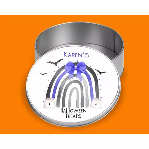 Personalised Halloween Rainbow Round tin