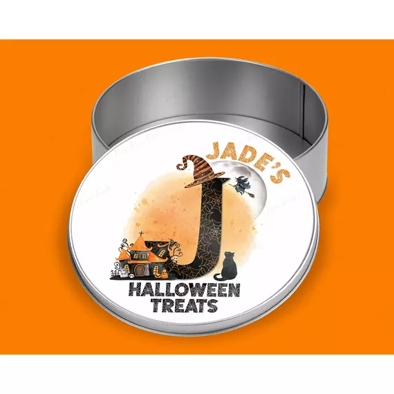 Personalised Halloween Witch Initial Round tin