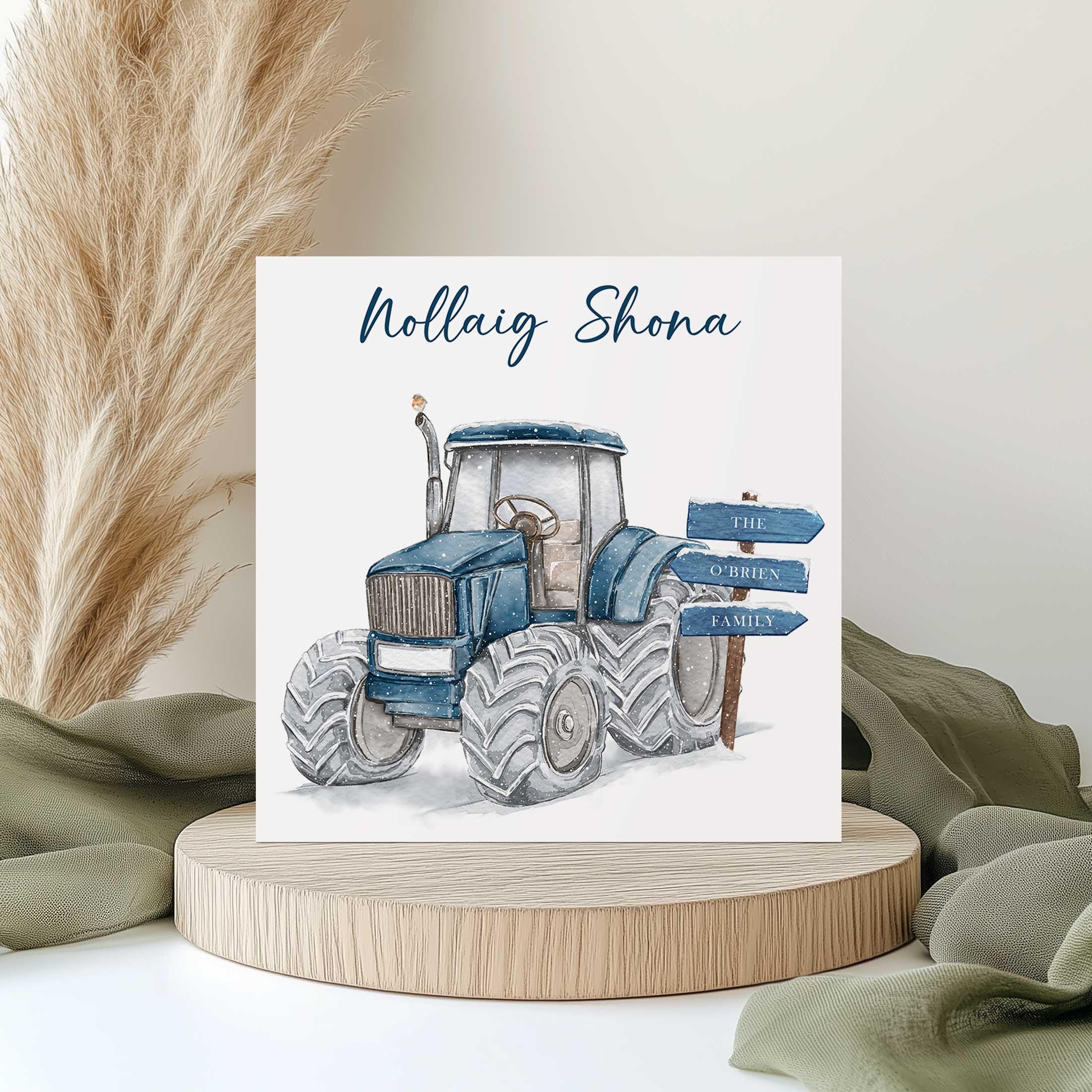 Personalised Nollaig Shona Christmas Tractor Card