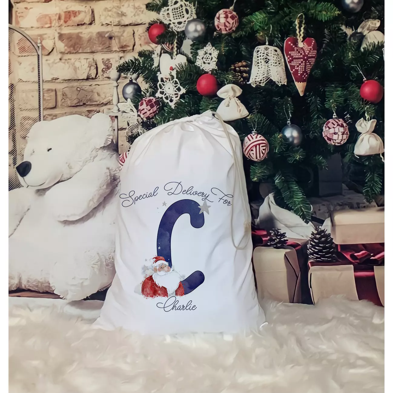 Personalised santa alphabet christmas sack