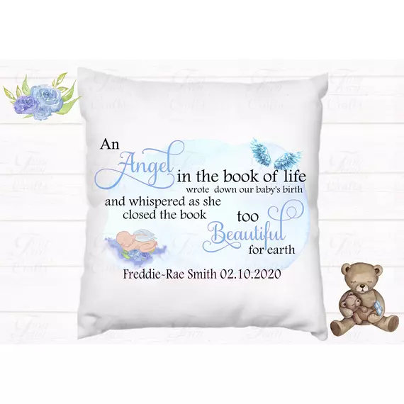 Too beautiful for earth baby memorial pillow.