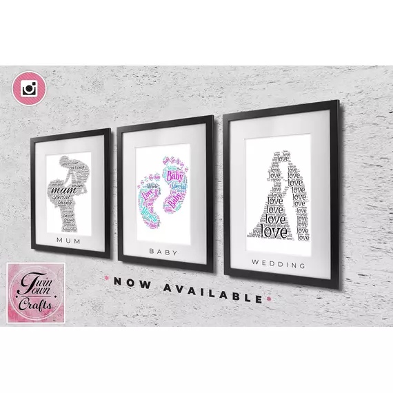 Photographs shown are for illustration purposes only. Because you provide your own unique set of words, the layout, colour differentiation and font sizes of your personalised print will differ from the ones shown but will be equally stunning.