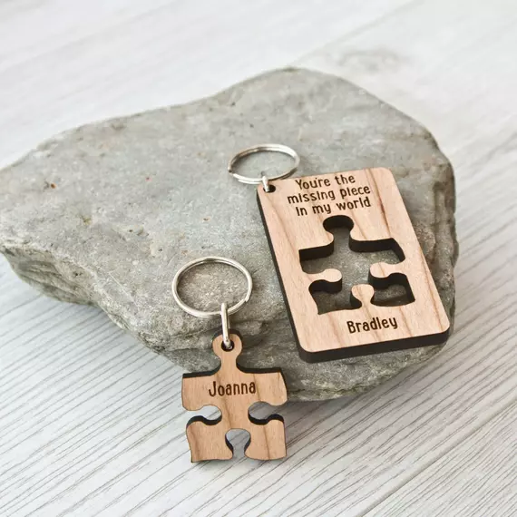 • Intricate Design: The keyring set is carefully laser cut for precision, with the heartfelt message, “you are my missing piece”, adding to its sentimental value.