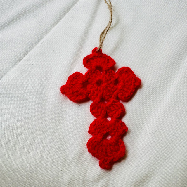 Hand crocheted, stiffened. Dimensions circa 10x6 cm