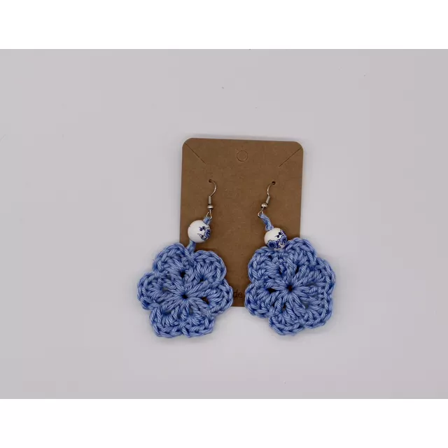 Hand crocheted blue flowers earrings