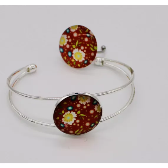 Jewelry set - Flowers on red 1 Bracelet and ring